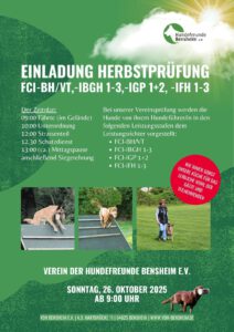 Am Sonntag den 26. Oktober 2025 findet ab 9 Uhr auf dem Gelände des VdH Bensheim unsere Herbstprüfung statt.
